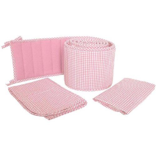 - Includes 1 reversible gingham/solid bumper, 1 reversible gingham/solid coverlet, and 1 gingham fitted sheet