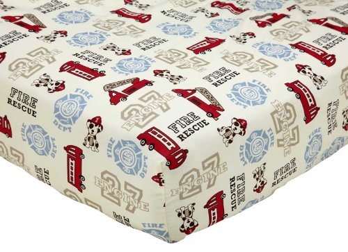 This adorable printed crib sheet is designed to fit a standard-sized crib mattress. It is part of the Engine 27 collection from NoJo, a colorful, firefighting-themed set of pieces for your babys nursery.
